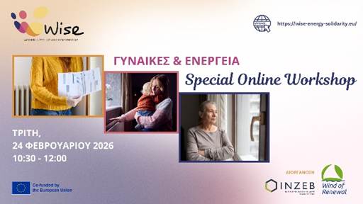Η Κοινωνική Συνεταιριστική Επιχείρηση ΑΝΕΜΟΣ ΑΝΑΝΕΩΣΗΣ και το ΙΝΖΕΒ συμμετέχουν ως εταίροι στο έργο WISE -Women in Solidarity for Energy, “Γυναίκες σε Αλληλεγγύη για την Ενέργεια”.